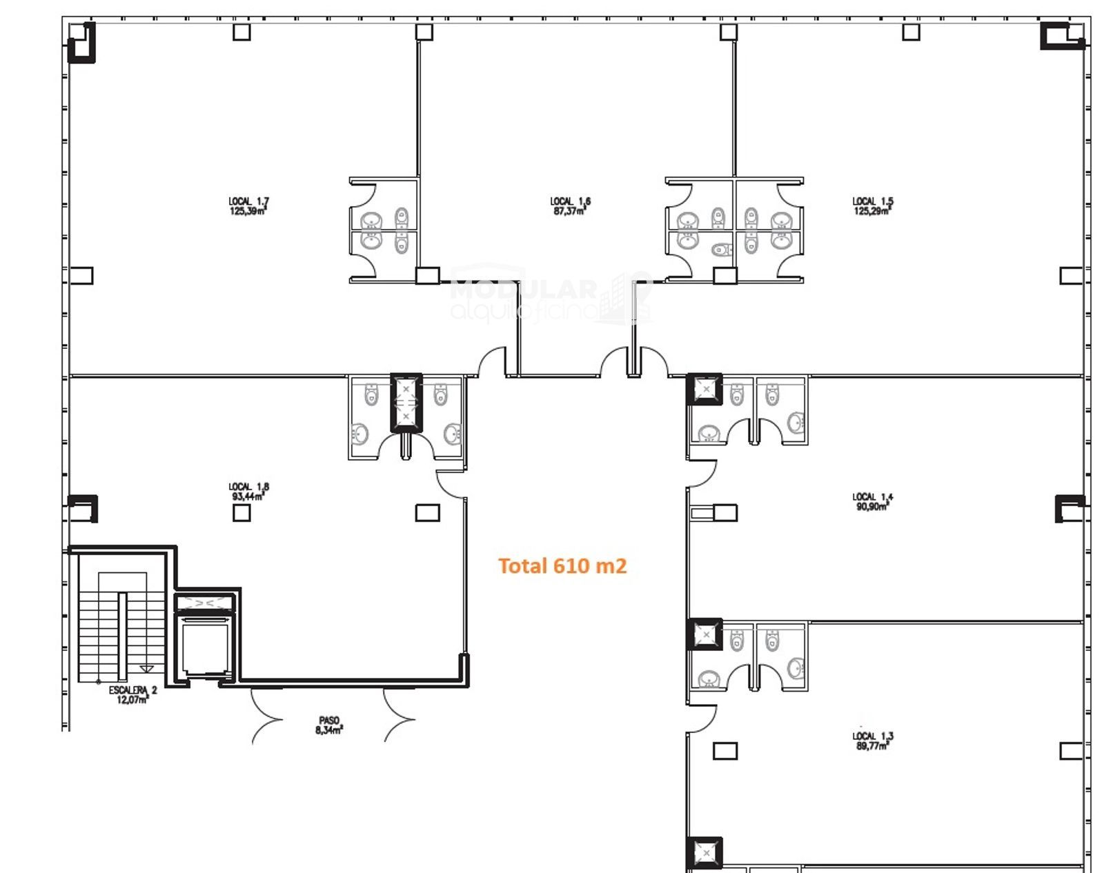 Sus 610 m² ofrecen una estructura ideal para crear **varios departamentos**, zonas de trabajo diferenciadas, despachos privados o áreas de reunión. Perfecta para empresas que necesitan organización y amplitud.
